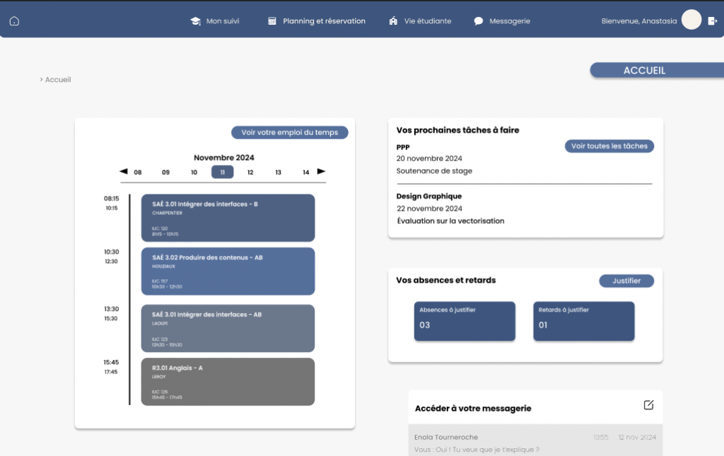 Cette année, notre projet portait sur la refonte de l’interface utilisateur de l’Environnement Numérique de Travail (ENT).